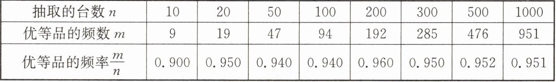 3. (2025·玄武区期末)某型号电视机的质量检测结果如下表, 任意抽取一台该型号电视机是优等品的概率的估计值是