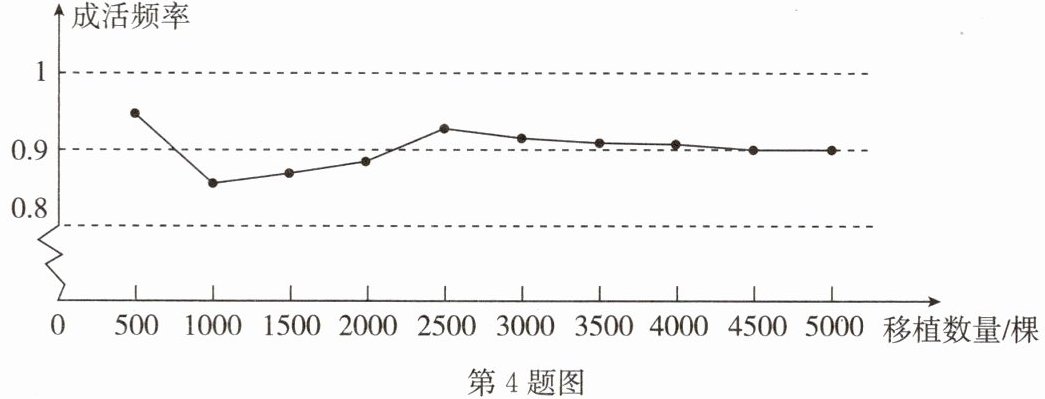 4. (2025·南京期中)某市林业局要移植一种树苗. 对附近地区 2024 年这种树苗移植成活的情况进行调查统计, 并绘制了如图所示的折线统计图.