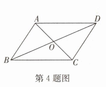 4. 如图,$□ ABCD$的对角线$AC$,$BD$相交于点$O$,$△ ABC$的周长为 10,$△ BCD$的周长为 16,则$OB - OA$的值为