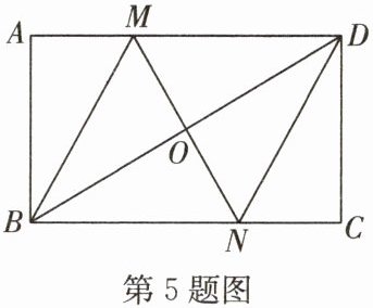 5. (2024·苏州吴中、高新区期中)如图,在矩形$ABCD$中,对角线$BD$的垂直平分线$MN$分别与$AD$,$BD$,$BC$交于点$M$,$O$,$N$,连接$BM$,$DN$.