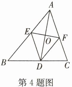 4. 如图,在$△ ABC$中,$AD$平分$∠ BAC$,过$AD$的中点$O$作垂线,分别交$AB$,$AC$于$E$,$F$两点,连接$DE$,$DF$. 求证:四边形$AEDF$是菱形.
