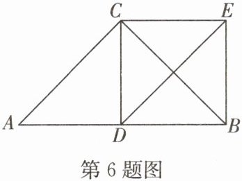 6. 如图,在 $△ ABC$ 中,$∠ ACB = 90^{\circ}$,$AC = BC$,$D$ 为 $AB$ 的中点,$DE// AC$,$CE// AD$,连接 $BE$,$CD$。求证:四边形 $CDBE$ 是正方形。