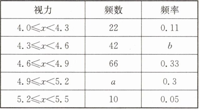 学生视力抽样调查频数分布表