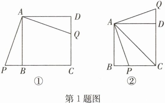 1. 已知四边形 $ABCD$ 为正方形,点 $P$ 在直线 $BC$ 上,连接 $AP$,过点 $A$ 作 $AP$ 的垂线交直线 $CD$ 于点 $Q$.