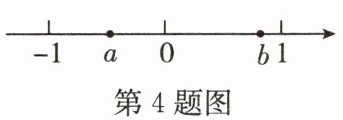 4. 实数$a$,$b$在数轴上的位置如图所示。