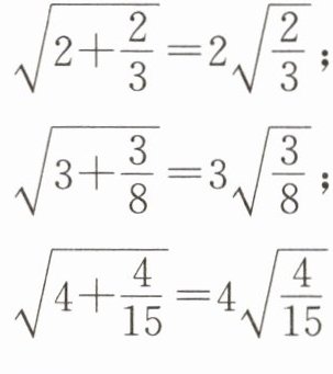 (2)①把你发现的规律用含有 $n$ 的等式表示出来:$\sqrt{n + \frac{n}{n^{2} - 1}} =$