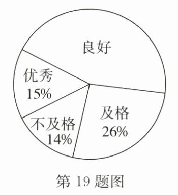 答案:19.(1)解:由题意,可得样本扇形统计图中体育成绩“良好”所对应扇形圆心角的度数为$(1 - 15\% - 14\% - 26\%)×360^{\circ} = 162^{\circ}$.