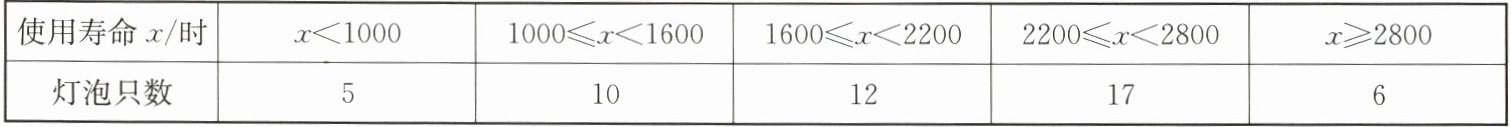 根据以上数据,估计这1000只灯泡中使用寿命不小于2200小时的灯泡的数量为