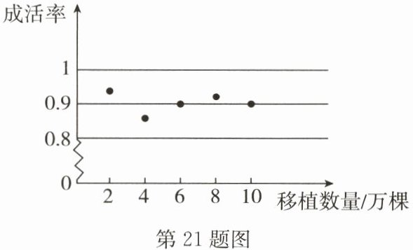 21. (10分)某地区林业局要考察一种树苗移植的成活率,对该地区这种树苗移植成活情况进行调查统计,并绘制了如图所示的统计图,根据统计图提供的信息解答下列问题: