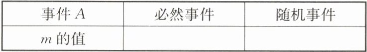 (1)先从袋子中取出$m(m≥ 1)$个红球,再从袋子中随机摸出1个球,将“摸出黑球”记为事件$A$. 请补全下列表格: