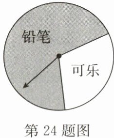 24. (12分)如图,某商场设立了一个可以自由转动的转盘,并规定:顾客购物10元以上就能获得一次转动转盘的机会,当转盘停止时,指针落在哪一区域就可以获得相应的奖品. 下表是活动进行中的一组统计数据: