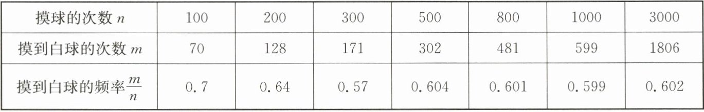 (1)请估计当$n$很大时,摸到白球的概率为