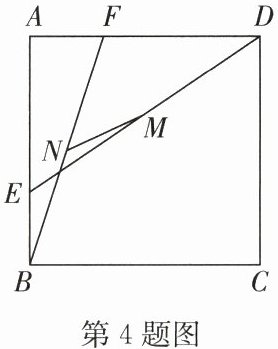 4. 如图,正方形 $ ABCD $ 的边长为 6,$ AF = BE = 2 $, $ M $, $ N $ 分别是 $ ED $ 和 $ BF $ 的中点,则 $ MN $ 的长为(