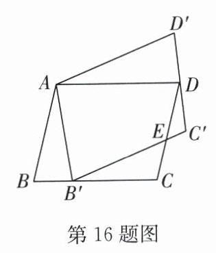 16. 如图,将$□ ABCD$绕点A逆时针旋转到$□ AB'C'D'$的位置,使点$B'$落在BC上,$B'C'$与CD交于点E,若$AB=3$,$BC=4$,$BB'=1$,则DE的长为