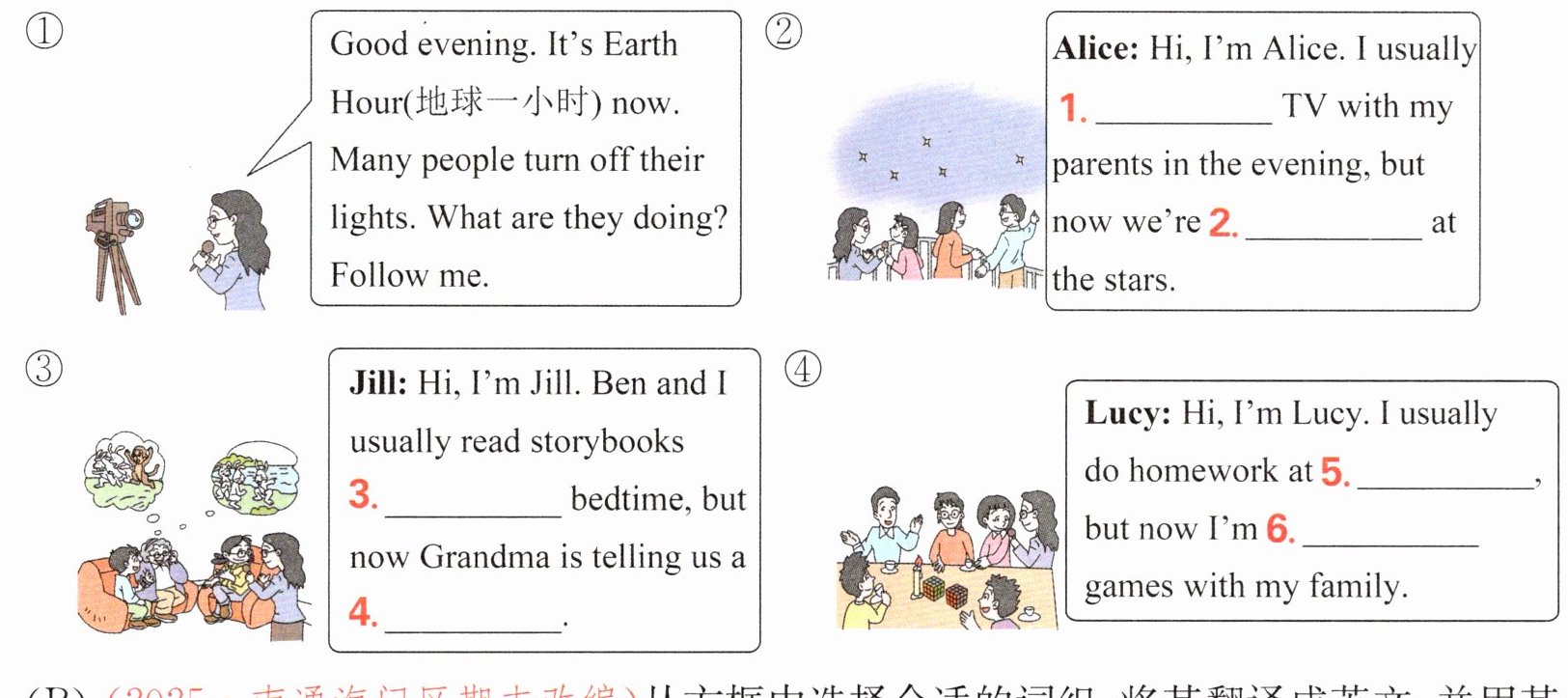 三、(2025·淮安洪泽区期末)根据情景提示,将括号内的内容连词成句,完成对话,注意首字母大写和标点符号。