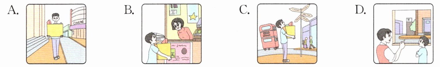 4. 第4小题:根据图片提示的路线,需用祈使句描述行走路线,先说明沿街道行走,再说明转向动作,最后指出目的地位置,组织通顺的英语表达即可。