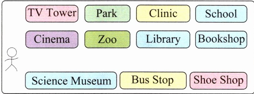 五、(常州天宁区期末改编)听录音,根据所听短文,将场所名称填入相应的位置。(听两遍)