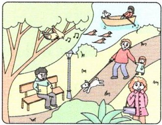 答案:park,reading,big,singing,also,walking,standing,lake,boat,swimming
