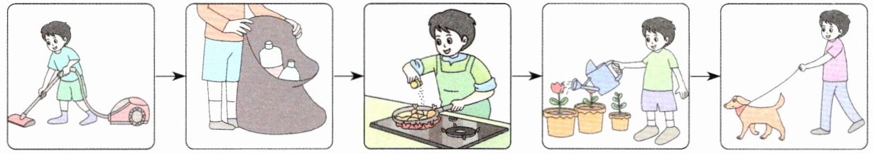 a. Help to take care of flowers and pets. b. Help to cook.