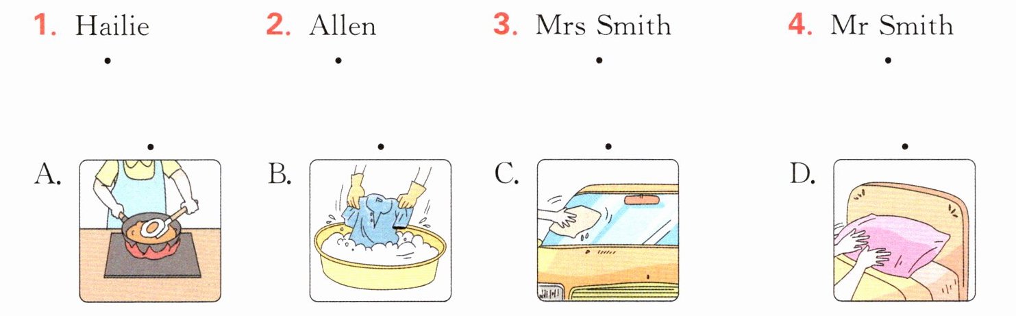 4. Mr Smith对应的动作是擦车,对应图片C。