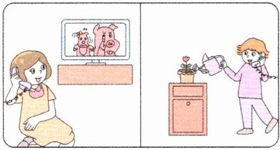 speaking;What;doing;watering;doing;housework;too;watching;wait