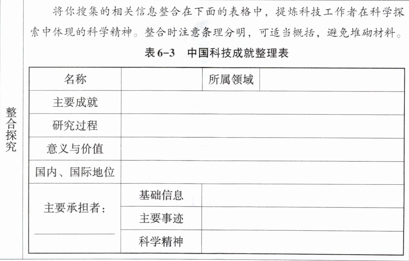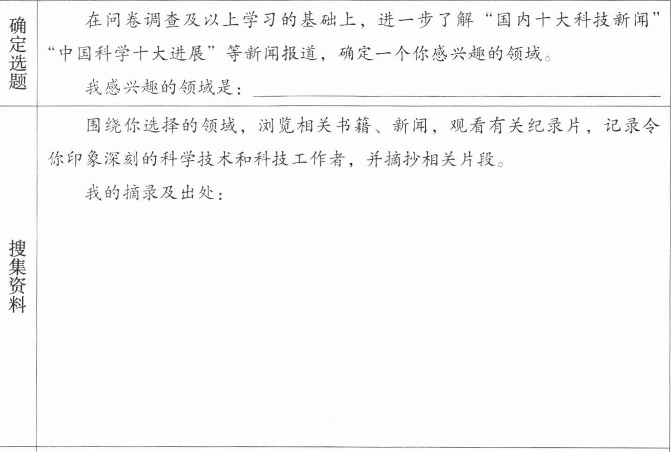 3. 为了继续搜集故事创作的素材,请你围绕“中国科技成就”的主题,填写搜集整合记录单。