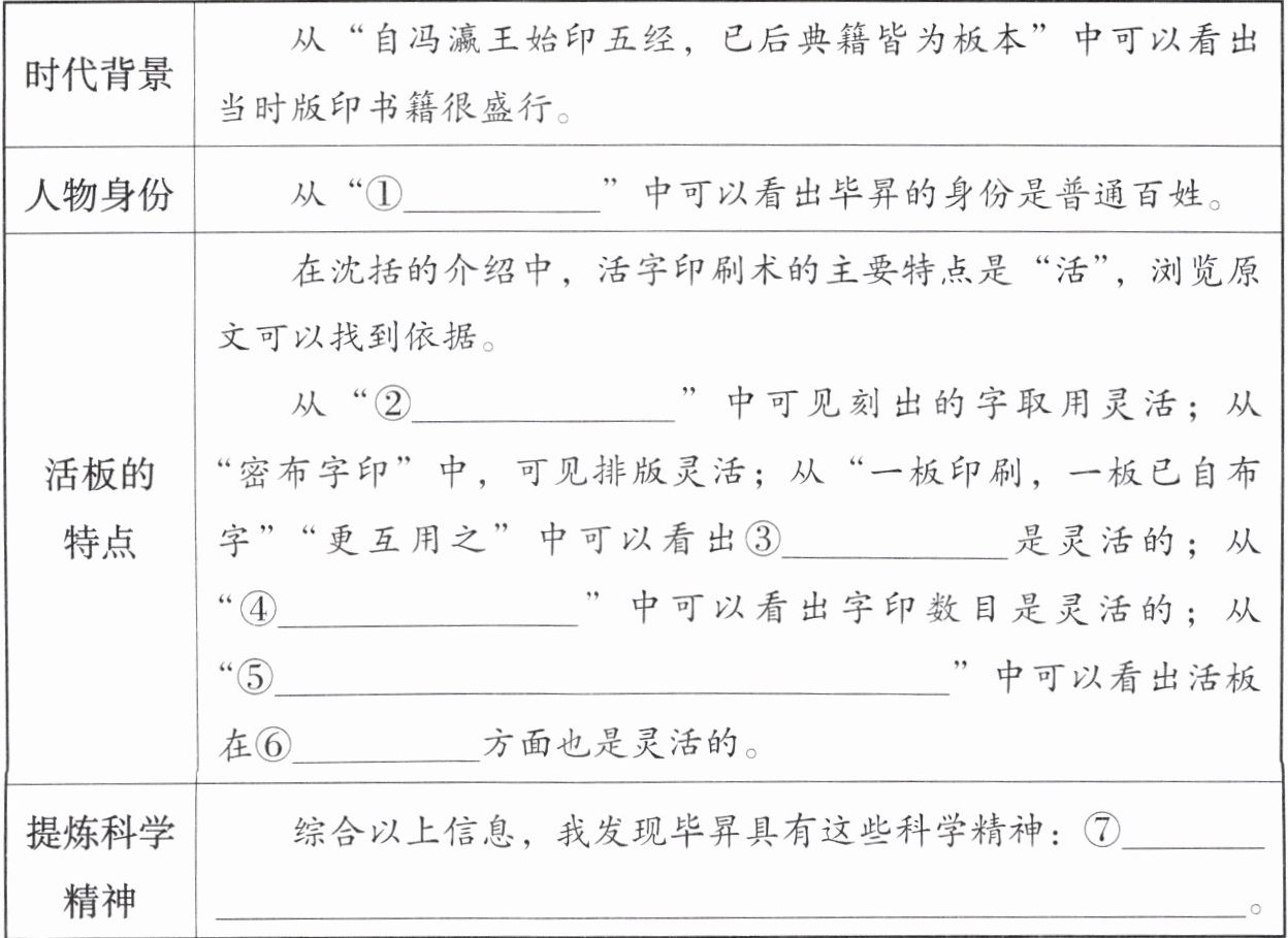 2. 完成以下任务,从《活板》中提炼毕昇的科学精神。
