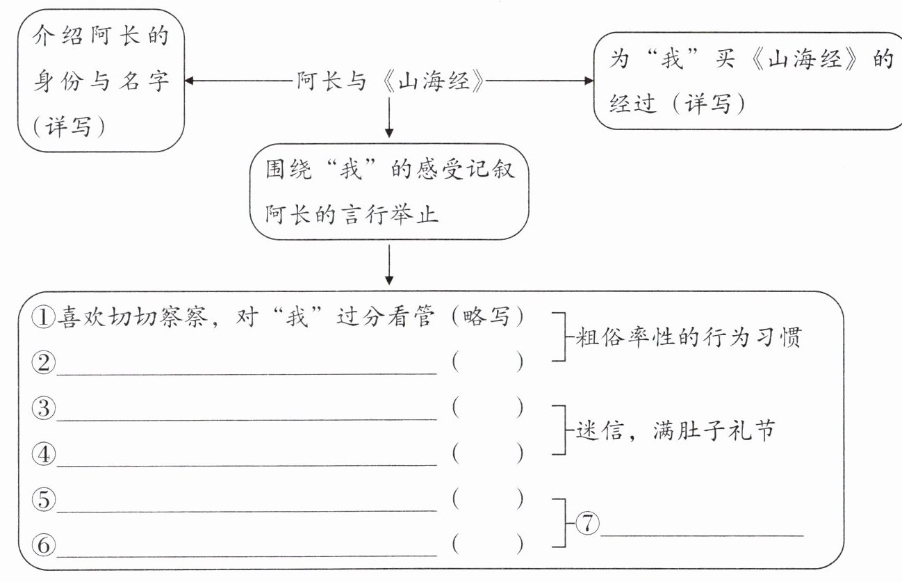 (1)熟读课文,梳理文中写阿长的事件,根据课文内容,完成下面的思维导图。