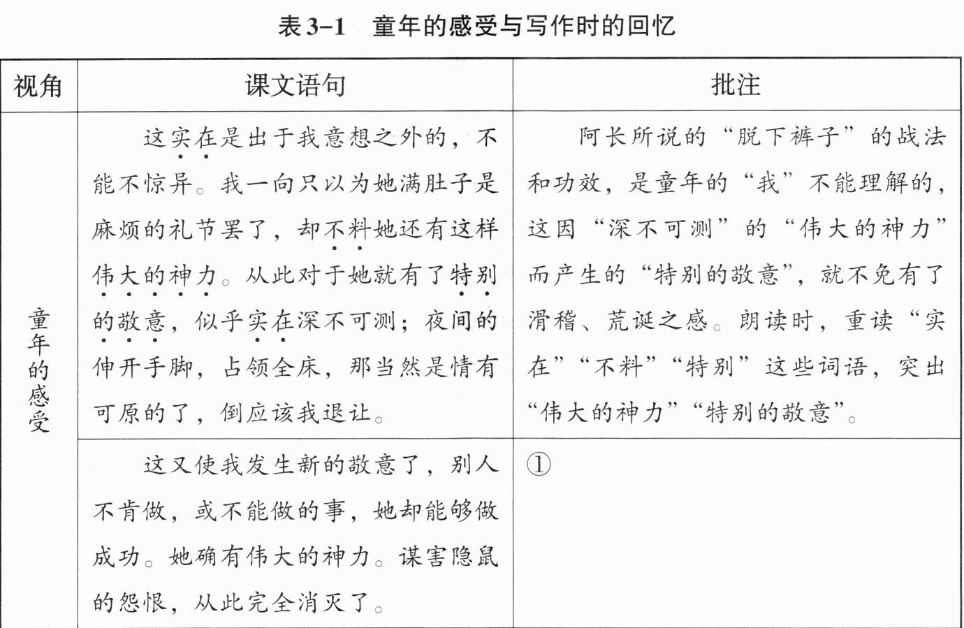 这是一篇回忆性散文,作者将童年的感受与写作时的回忆交错转换,在对比反差中表达情感。朗读课文,体验情感,并仿照示例,将你的朗读设计与情感体验写在批注栏里,和同学交流。