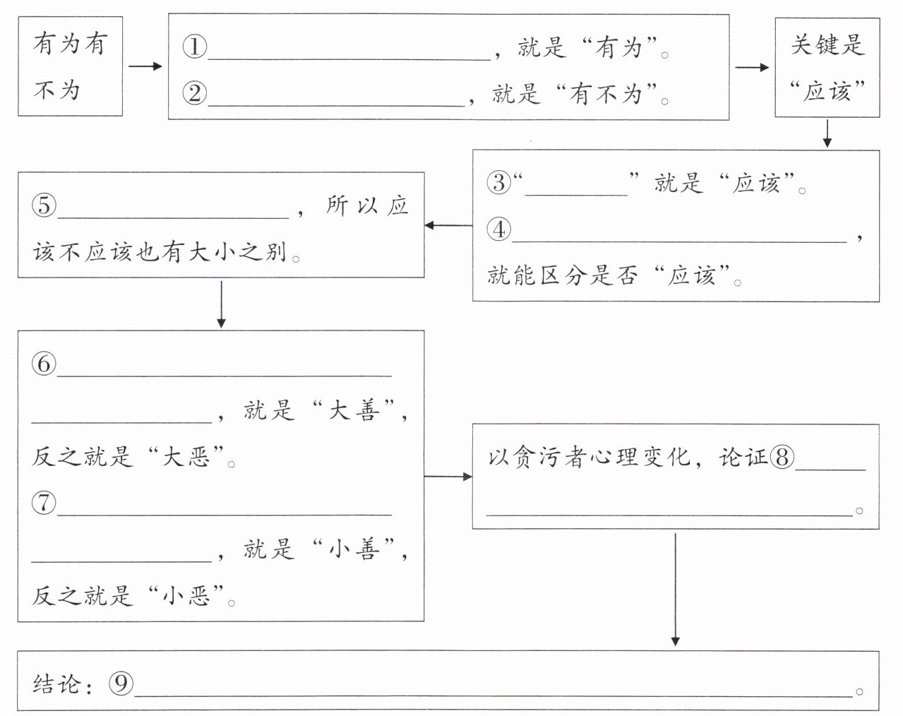 (2) 借助圈画出的重要语句,将下面的思维导图补充完整。