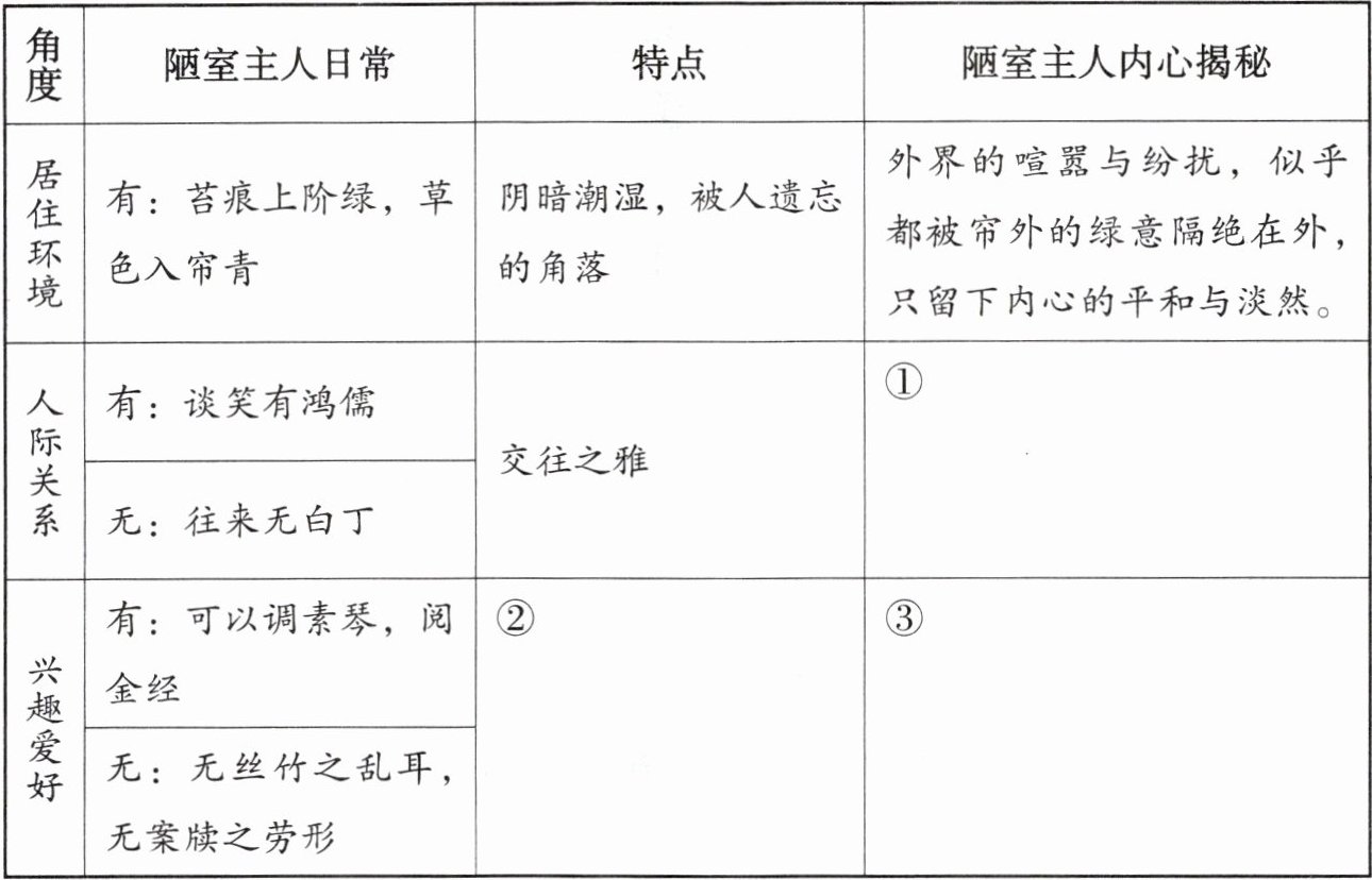(2) 借助以上梳理,解答“困惑”:作者为什么要赞美“陋室”?