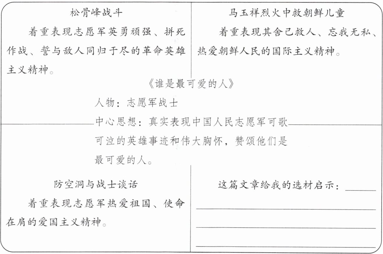《谁是最可爱的人》:选取最能表现中心思想的事例,事例有代表性