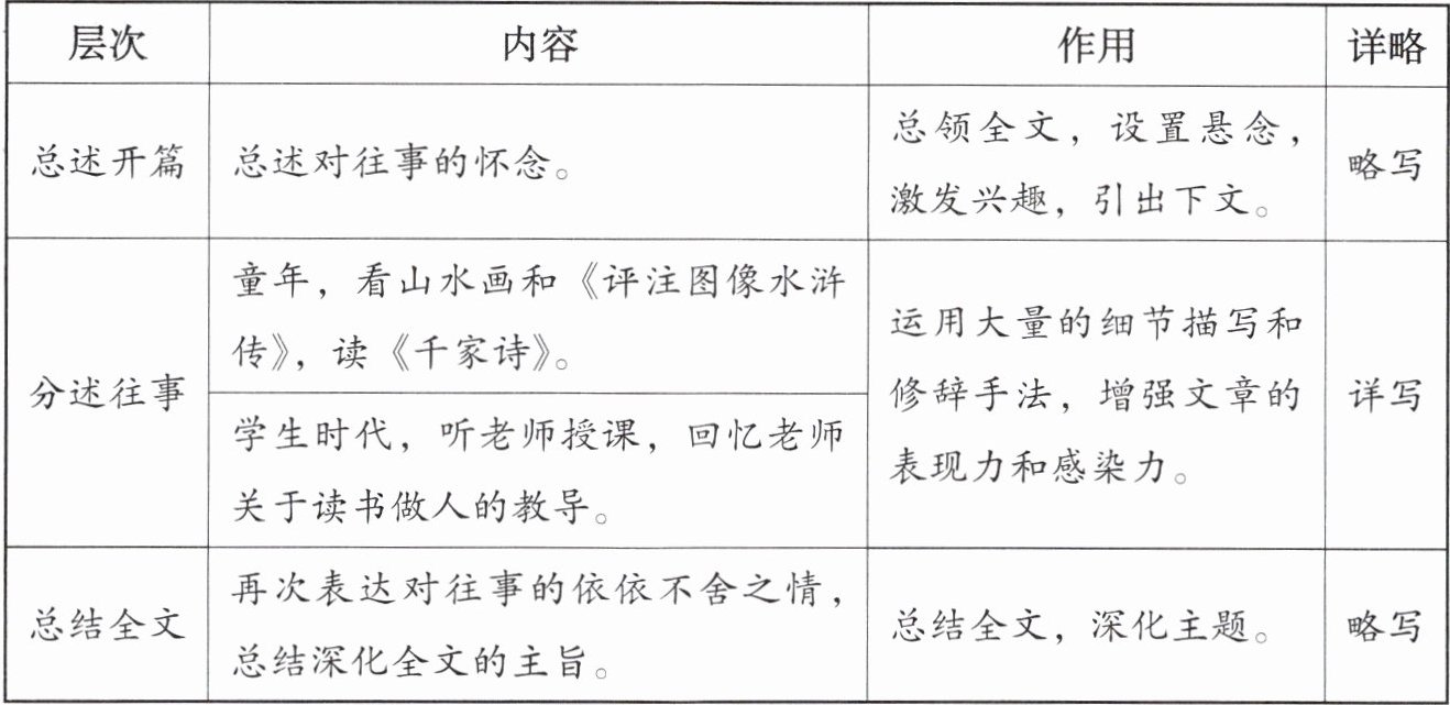 |层次|内容|作用|详略|