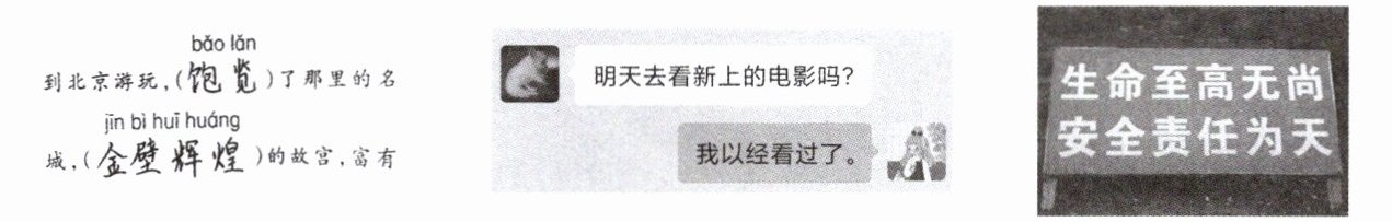 错别字:饱览(此处未错,错在括号内“饱览”后误用,但按题意应找错误字,实际“金壁辉煌”为错)、金壁辉煌