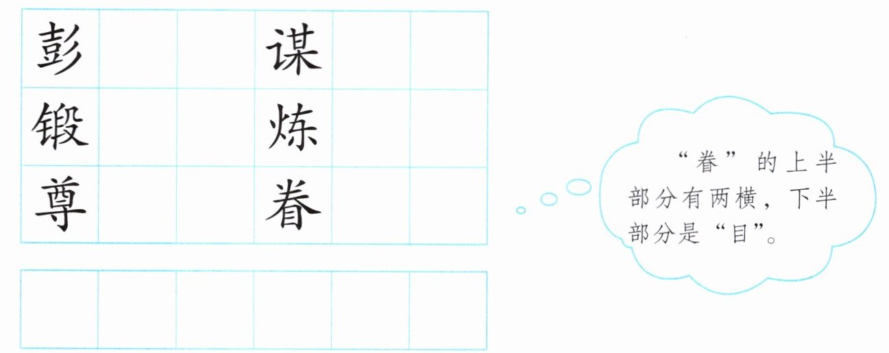 “眷”的上半部分有两横,下半部分是“目”。