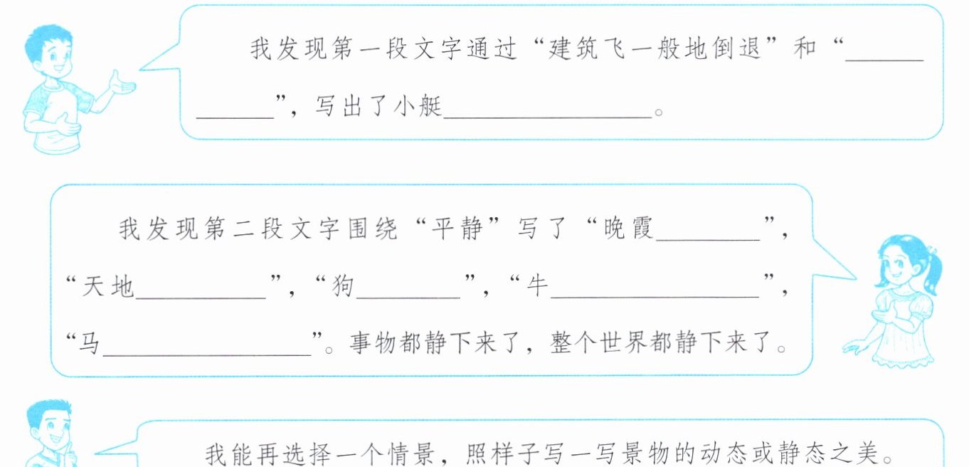2. 读教科书第105页“词句段运用”第1题的两段话,完成练习。
