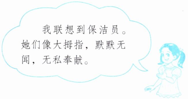 我联想到保洁员。她们像大拇指,默默无闻,无私奉献。