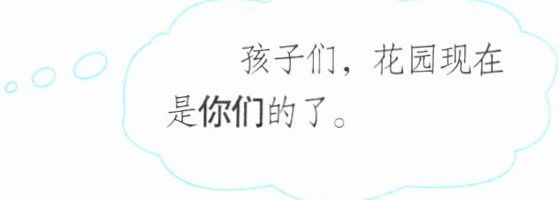 3. 巨人拆除围墙后:从那以后,巨人的花园又成了孩子们的乐园,孩子们站在巨人的脚下,爬上巨人的肩膀,尽情地玩耍。