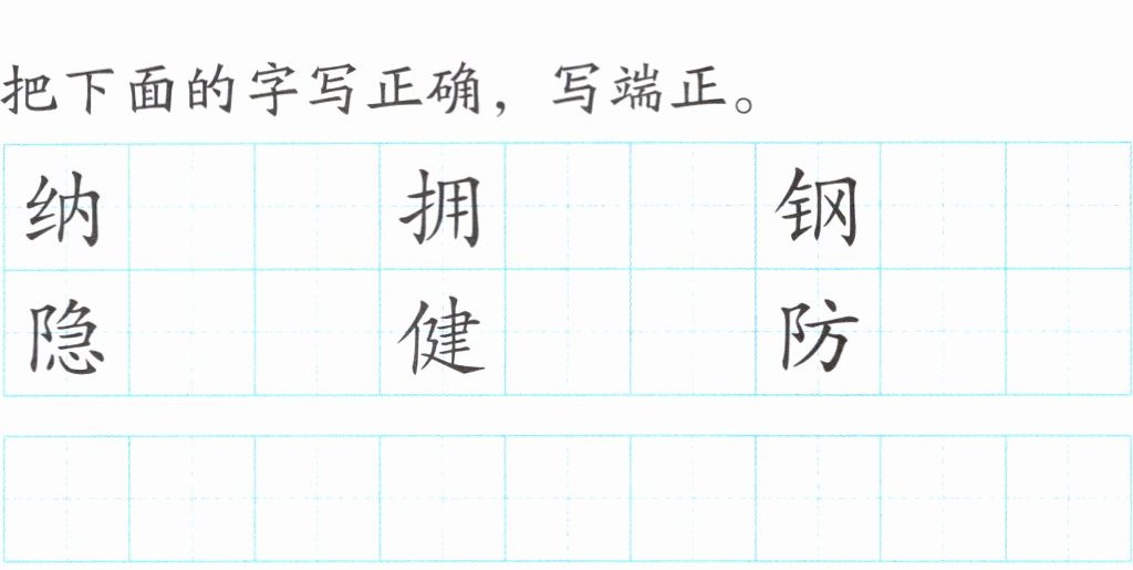 1. 把下面的字写正确,写端正。