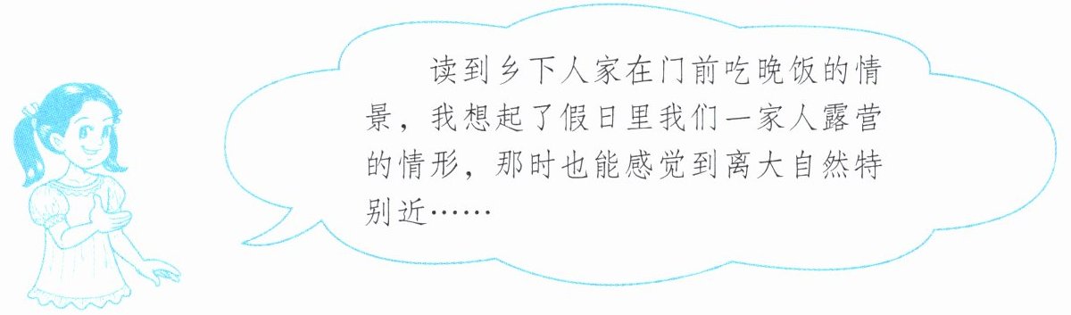 地吃起来。天边的红霞,向晚的微风,头上飞过的归巢的鸟儿,都是他们的好友。它们和乡下人家一起,绘成了一幅自然、和谐的田园风景画。
