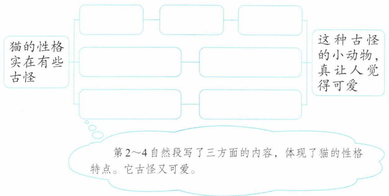 (1) 想一想作者是怎样把“猫的性格实在有些古怪”写具体的,并完成下页示意图。