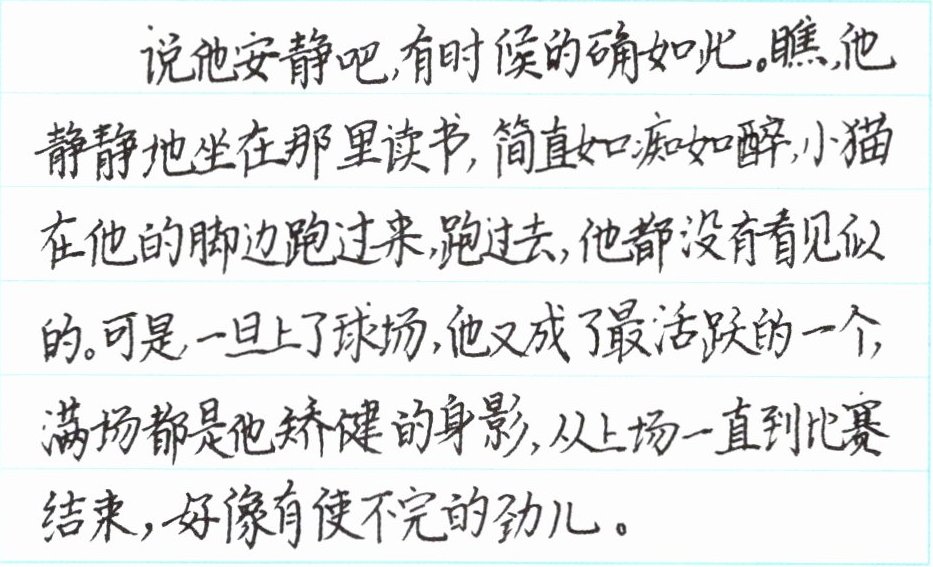 说她文静吧,有时候确实这样。看,她坐在窗边画画,铅笔在纸上沙沙作响,窗外的小鸟叽叽喳喳,她都像没听见似的。可是,一到体育课上,她就变了个样,像只轻盈的小燕子,跳绳时绳子甩得嗡嗡响,跑步时像一阵风,脸上洋溢着快乐的笑容,怎么也停不下来。