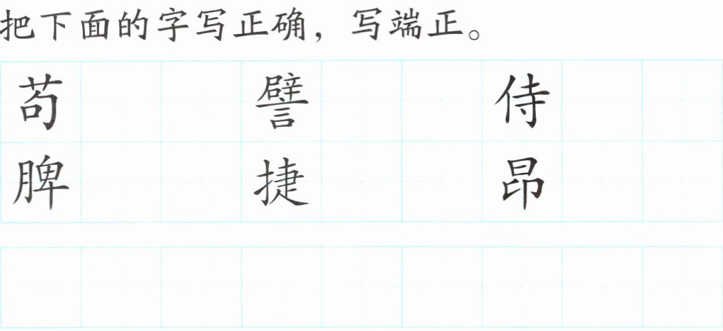 (在田字格中端正书写上述汉字,每个字占一格,注意笔画规范和字形结构。)