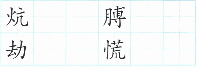 (在田字格中准确、端正书写“炕 膊 劫 慌”四个字)