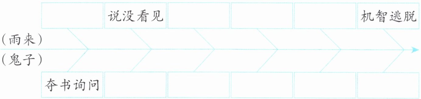 (2)*根据示意图,说一说雨来应对鬼子的过程。