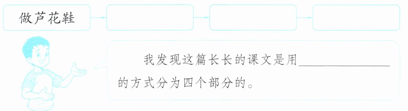 答案:卖芦花鞋;城里人买芦花鞋;最后一双芦花鞋;空行。