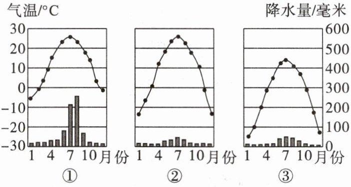 (2)亚洲各国自然环境差异大,下图为亚洲三条河流某地的气温曲线与降水量柱状图,能够表示黄河、锡尔河、叶尼塞河的数码依次是