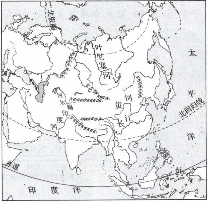 8. (选做题)国家主席习近平在博鳌亚洲论坛 2022 年年会开幕式的主旨演讲中指出:“亚洲好世界才能更好。我们要继续把亚洲发展好、建设好,展现亚洲的韧性、智慧、力量,打造世界的和平稳定锚、增长动力源、合作新高地。”读亚洲简图,完成下列各题。