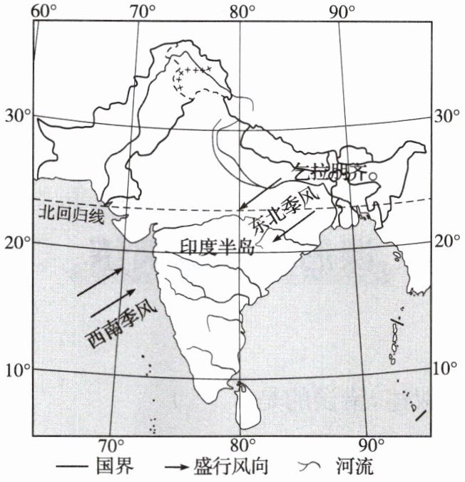 南亚指位于亚洲南部喜马拉雅山脉中、西段与印度洋之间的广大地区。读南亚局部地区略图,完成 4~6 题。