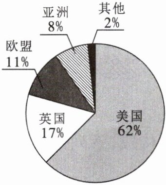 服务外包使不同国家建立了经济联系。读 2020 年印度服务外包收入来源地构成图,完成 7~8 题。